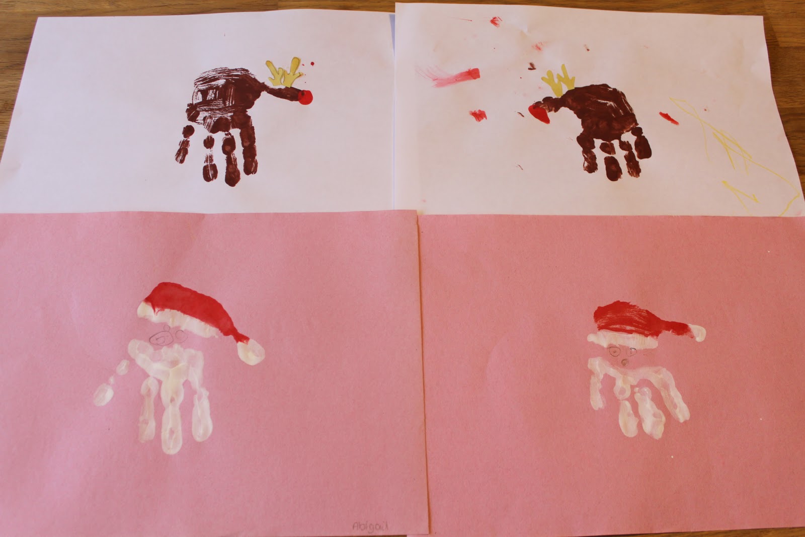We had a few Christmas craft days with friends during the holidays which they all enjoyed. Their ages ranged from 14mth to 4 years so we created various Handprint pictures as its an activity that all ages can join in with.